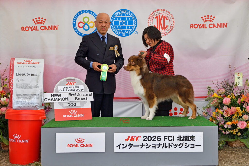 ・2026年3月15日 FCI北関東インターナショナルドッグショー GULCH ジュニアクラス(牡)1席🥇 JKCジュニアチャンピオン完成🏅